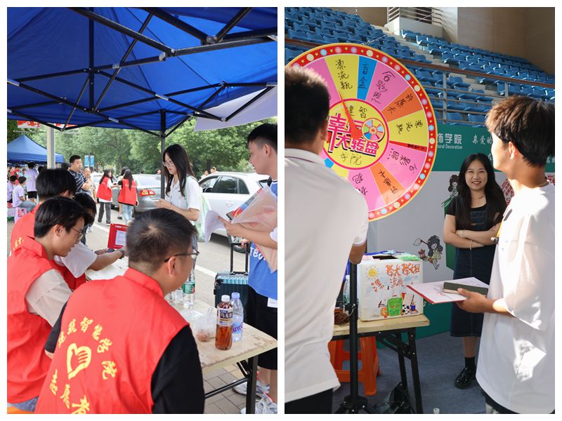 迎新活动现场,经过精心布置,洋溢着欢乐喜庆的氛围。在学院报到点,各项迎新流程标识温馨醒目,各主要报到环节也都按照要求安排党员、学生干部和志愿者提供热心服务,从报到点至宿舍全流程帮助,让新生能在入学伊始就感受到学院的关怀,较快适应生活场景和个人角色转变。学院在报到现场设置了幸运转盘大抽奖,分别设置了惊喜大盲盒、学长漂流瓶、幸运许愿卡、温情大拥抱、幸福合影照等特色活动,内容涵盖学习用品赠送、学长寄语、心愿表达、心理抚慰、拍照留影等活动环节,师生的温暖与关怀时时萦绕在现场。