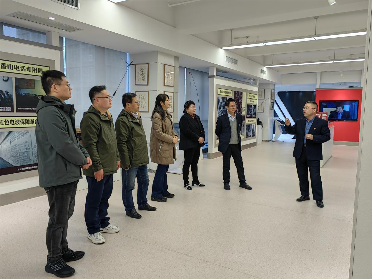 张侠、陈益武一行参观了红色通信党员教育实境课堂,了解通信发展历程、公司党建工作实践成效,体验“星火党建”、VR沙盘、XR党建工作站等党建信息化建设。